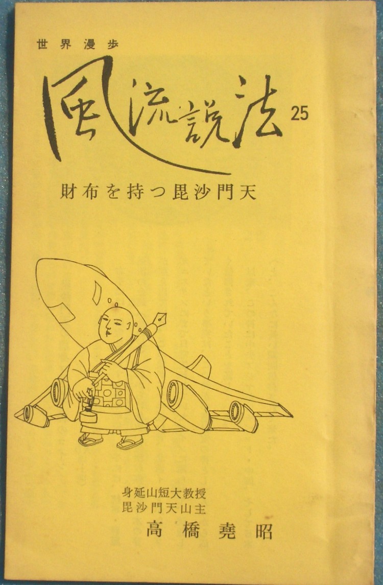| 風流説法 25 財布を持つ毘沙門天 | 新書判サイズ、44ページ、端少汚 | 高橋堯昭 | 静岡県富士市・毘沙門天布教研究所 | 昭和63年 | \500 |