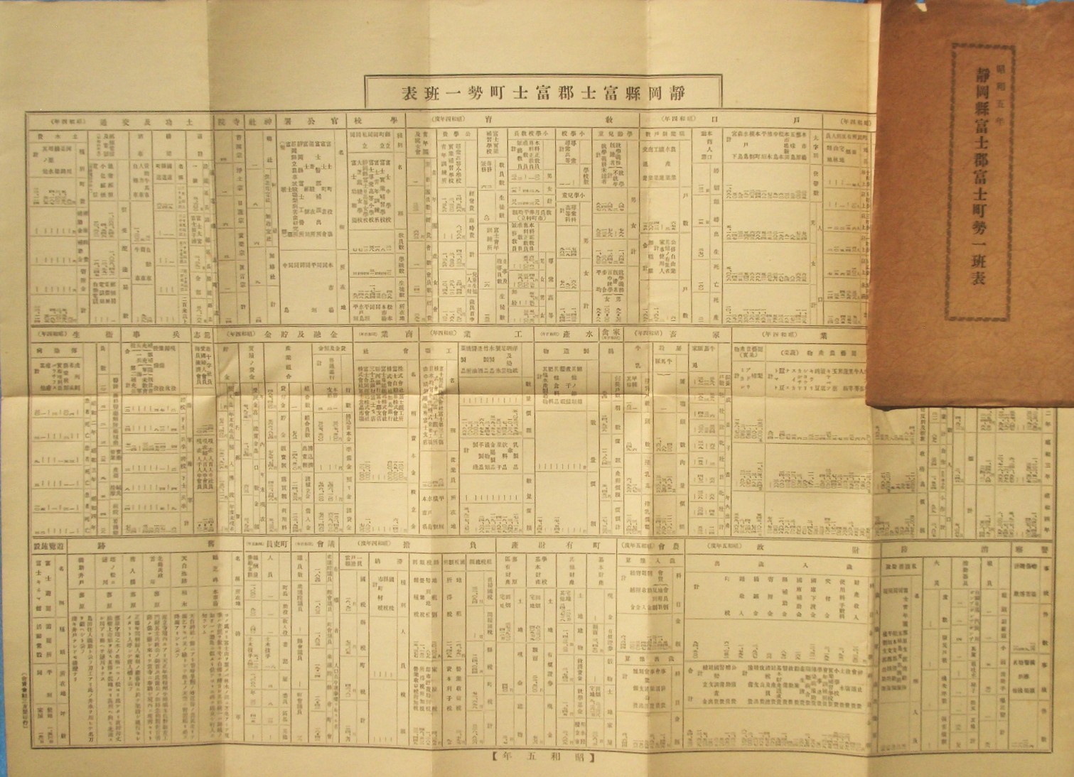 | 昭和五年 静岡県富士郡富士町勢一班表 一枚 (静岡県富士市) | 39×54センチ、表紙上部痛 | 富士郡富士町役場 | 昭和5年 | \2,000 | |