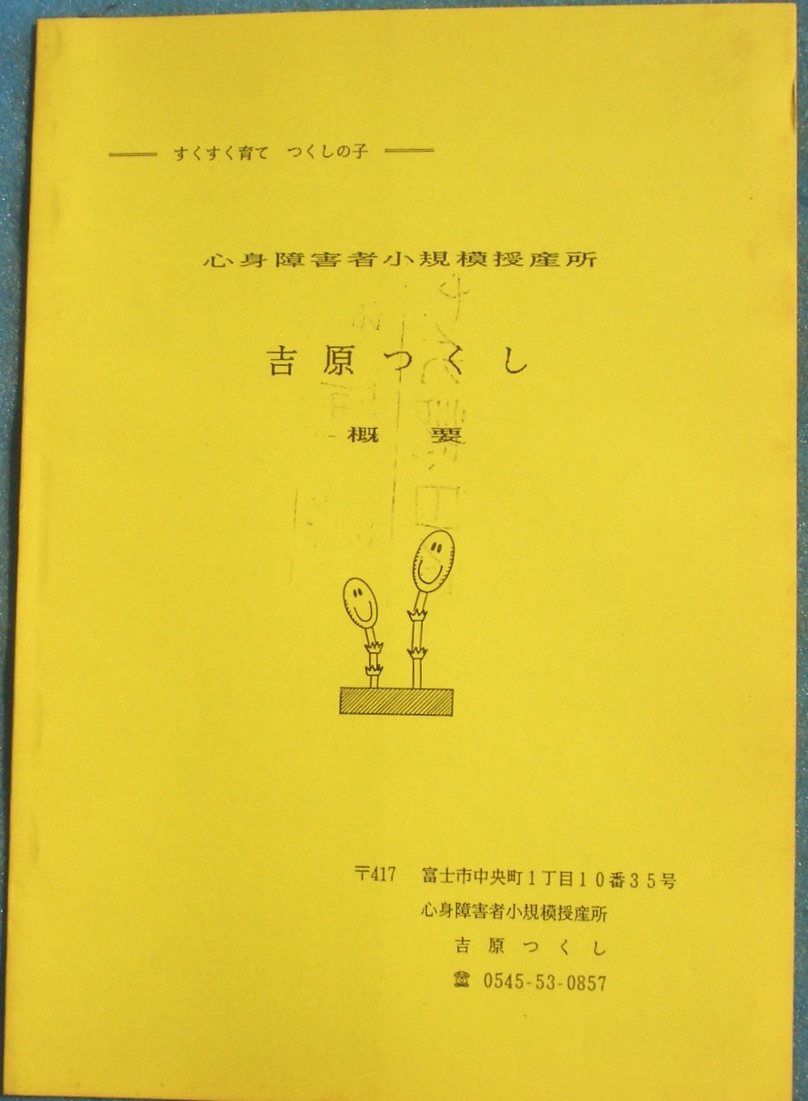 | 心身障害者小規模授産所 吉原つくし 概要 (静岡県富士市) | B5判、薄冊、表紙少汚 | 吉原つくし | 平成元年 | \600 | |