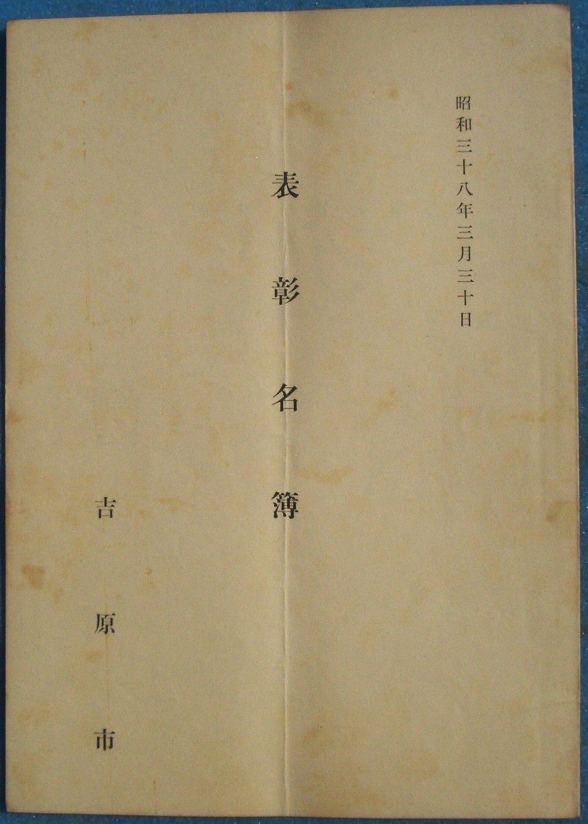 | 遺族青少年名簿 昭和35年10月 吉原市遺族会 (静岡県富士市) | B5判、11ページ、記名、蔵印、汚・錆、シワ | 吉原市遺族会 | 昭和35年 | \1,000 | |
