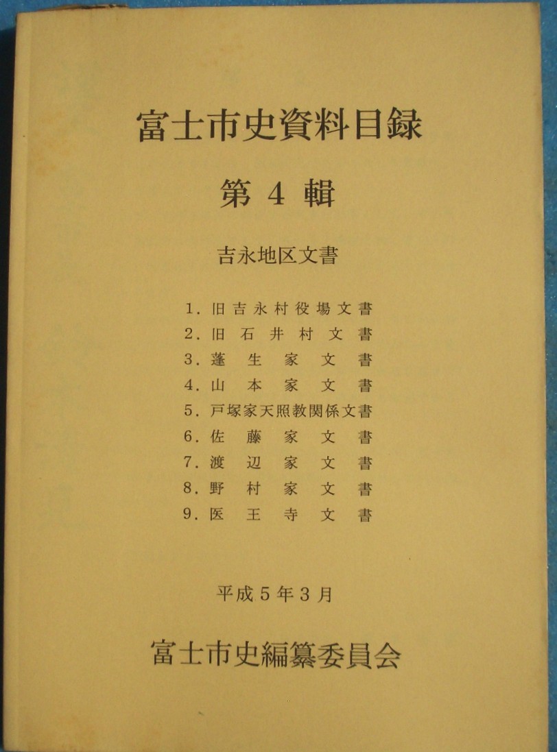 | 旧中里村大坪関家文書目録 | B5 | 駿河郷土史研究会編 | 富士市立博物館 | 平成3 | \2,500 |