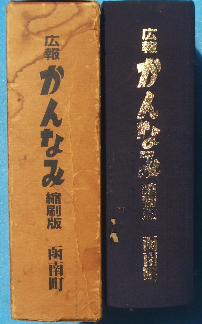 | 広報かんなみ 縮刷版 1号〜183号縮刷合本 静岡県田方郡函南町発行 | A5判、厚冊、函痛汚シミ、小口ヤケ | 1号(昭和39年5月15日号)〜183号(昭和56年9月15日号) | 静岡県田方郡函南町 | 昭和56年 | \4,000 |