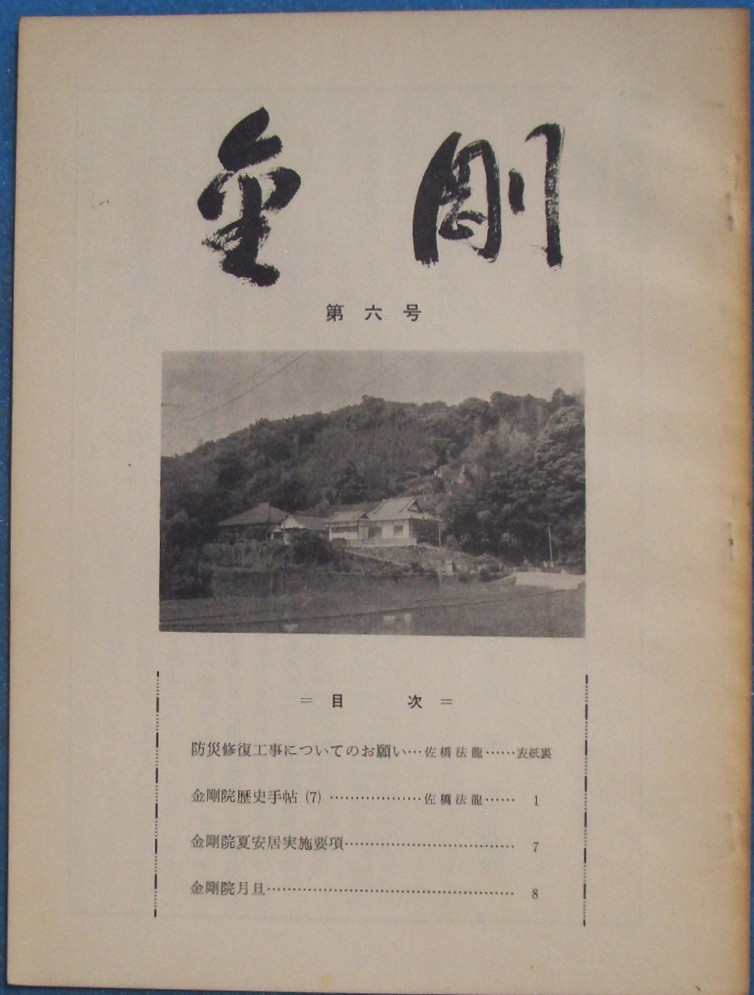 | 金剛 6号(昭和52年6月) 静岡県賀茂郡南伊豆町・金剛院 | B5変形判、8ページ、端少ヤケ汚 | 佐橋法龍 | 静岡県南伊豆町・金剛院 | 昭和52年 | 売切 |