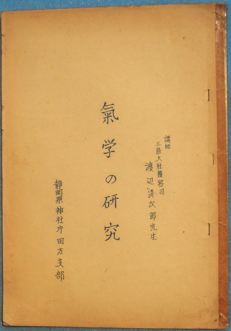 | 気学の研究 渡辺清次郎著 孔版 静岡県神社庁田方支部 | B5判、孔版、18ページ、ヤケ、ホッチキス止、テープ補修、裏書入 | 講師・三島大社権宮司 渡辺清次郎 | 静岡県神社庁田方支部 | \1,500 | |
