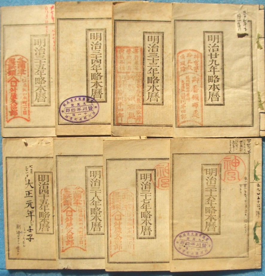 | 昭和十年略本暦 | 12×18センチ、糸綴、汚 | 神宮神部署 | 昭和9年 | \500 | |