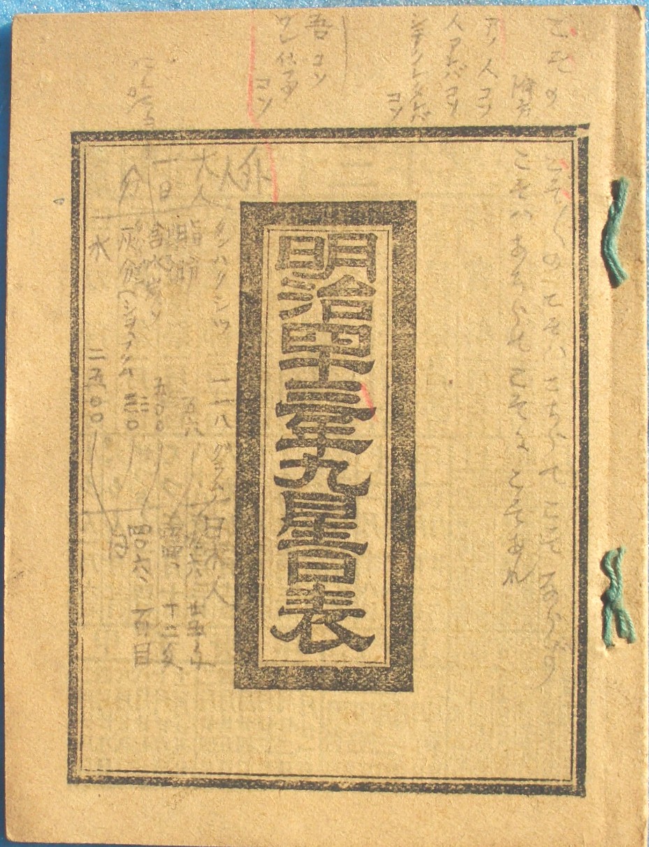 | 星廻獨便覧 明治21年新撰 | 11×15センチ、糸綴、14丁、汚 | 三重・中田鶴松編集・印刷 | 明治21年 | \600 | |