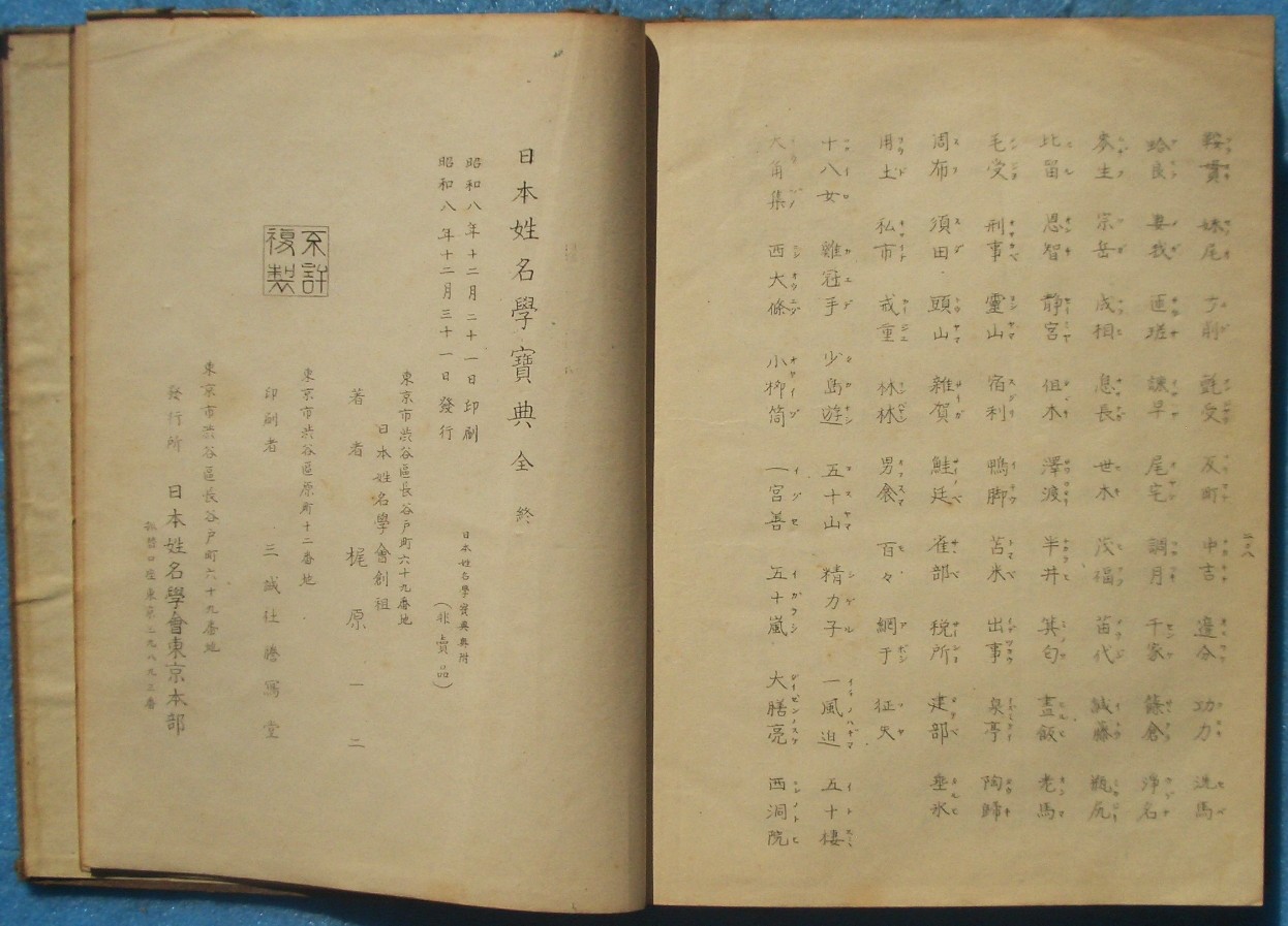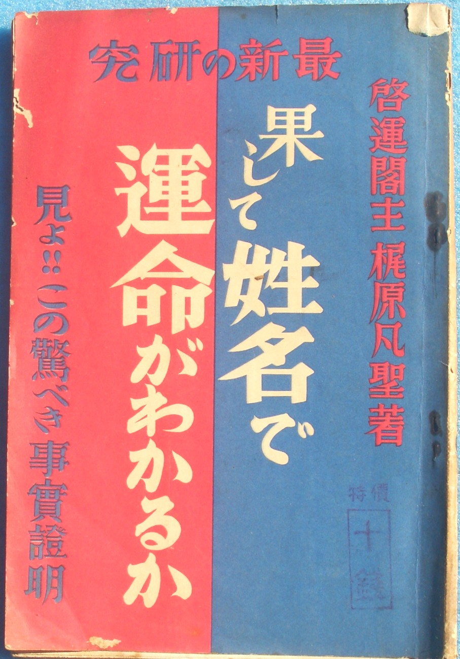 | 指紋と性格 | B6判、ヤケ、シミ、汚、角小虫 | 長谷川滔浦 | 清教社 | 昭和21年再版 | \800 |