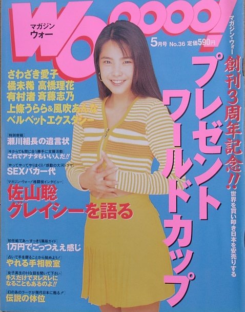 | Wooooo マガジンウォー 36号 1995/5 | 金澤あかね表紙、空山基イラストピンナップ、端少痛 | さわざき愛子、橘未稀、高橋理花、有村渚、上條うらら、風吹あんな、斉藤志乃 | マガジン・マガジン | 平成7年 | \400 |