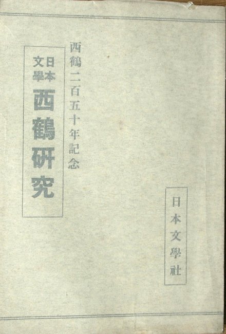 | 西鶴研究 −日本文学− 西鶴二百五十年記念 | A5判、裸本、小口ヤケ | 鈴木敏也、藤井乙男、京口元吉、山口剛、江馬務、中谷博ほか | 日本文学社 | 昭和7 | \2,000 |
