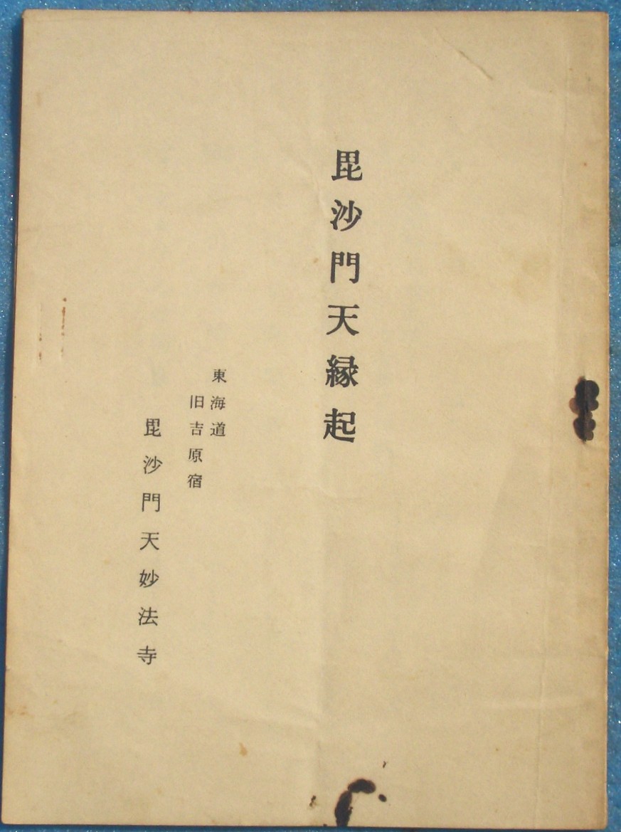 | 毘沙門天縁起 東海道旧吉原宿・毘沙門天妙法寺 | B6判、13ページ、表裏表紙汚・シミ、釘錆 | 毘沙門天妙法寺(静岡県富士市) | \600 | ||