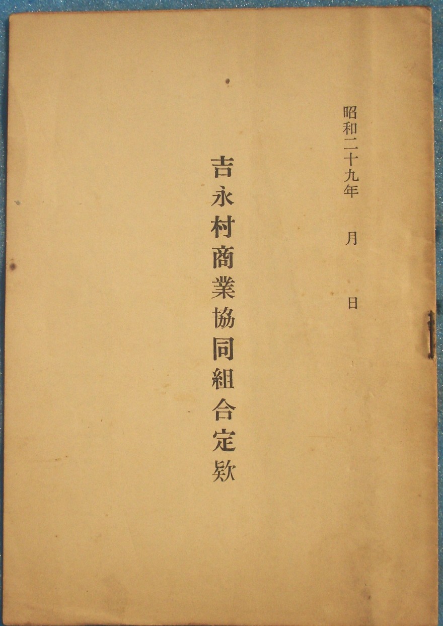 | 吉永村商業協同組合定款 昭和29年 (静岡県富士市) | B6判、8ページ、少ヤケ、釘錆 | 吉永村商業協同組合 | 昭和29年 | \500 | |