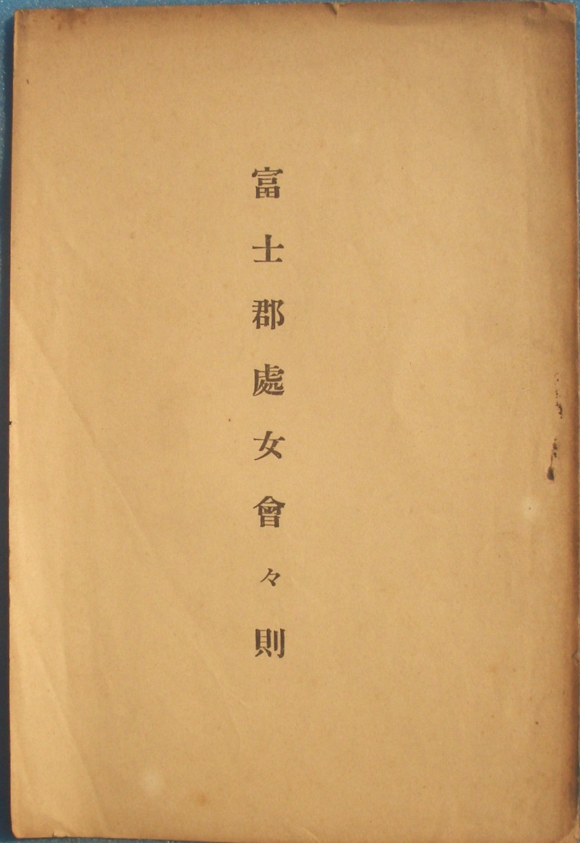| 富士郡処女会々則 大正11年5月20日制定 静岡県富士郡役所 | B6判、4ページ、ヤケ | 静岡県富士郡役所 | 大正11年 | \700 | |