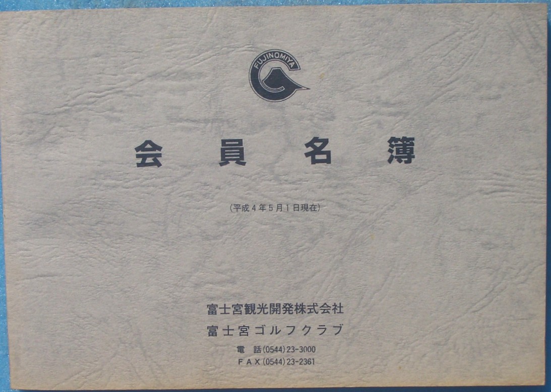 | 会員名簿 平成4年5月1日現在 富士宮ゴルフクラブ | B6判横本、141ページ、小口汚 | 富士宮観光株式会社・富士宮ゴルフクラブ | 平成4年 | \1,500 | |