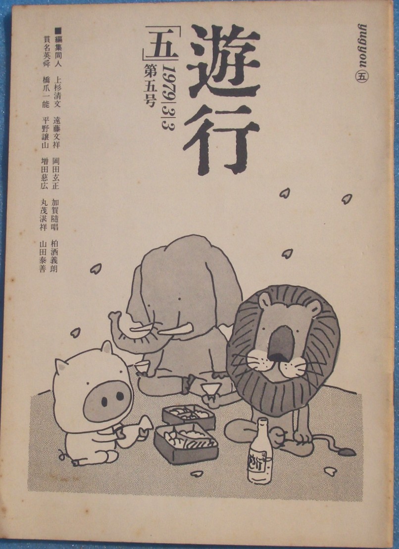 | 遊行 ゆぎょう 5号(1979年3月) 静岡県富士市本国寺内・遊戯の友 | A5判、52ページ、少ヤケ汚 | 上杉清文、今成元昭、貫名英舜、松原哲明、丸茂湛祥、柏酒義朗、奥成達、佐藤文哉、谷口憲久ほか | 静岡県富士市本国寺内・遊戯の友 | 1979年 | \700 |