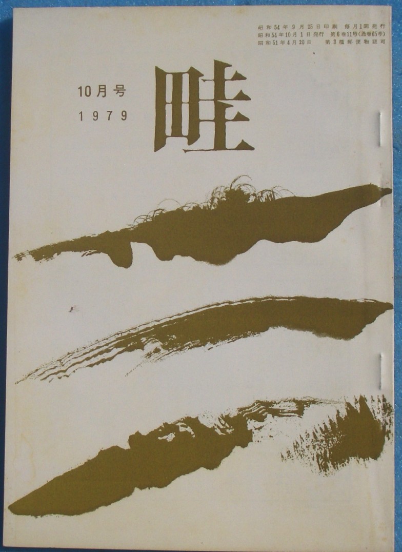 | 畦 6巻11号・通巻65号 1979年10月号 俳句雑誌・上田五千石ほか | A5判、118ページ、背・小口少ヤケ | 畦の会 | 昭和54年 | \600 | |