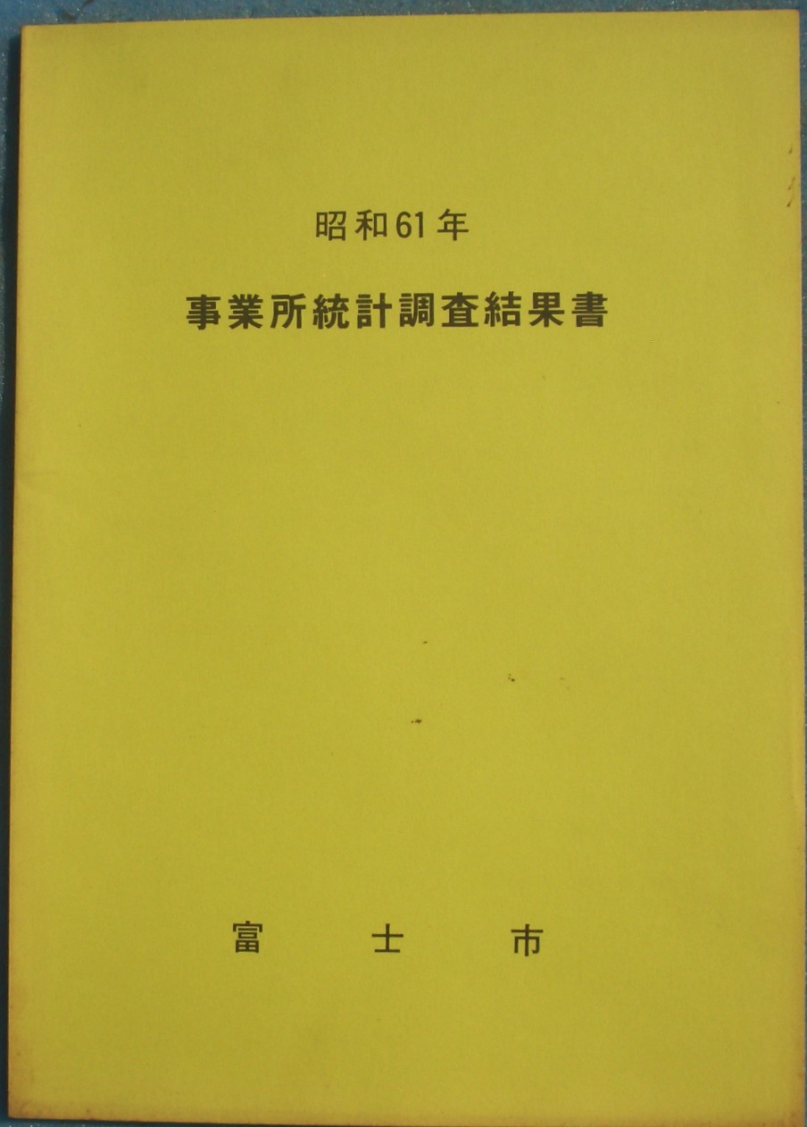 | 事業所統計調査結果書 昭和61年 静岡県・富士市 | B5判、73ページ、少汚 | 富士市 | 昭和61年 | \800 | |