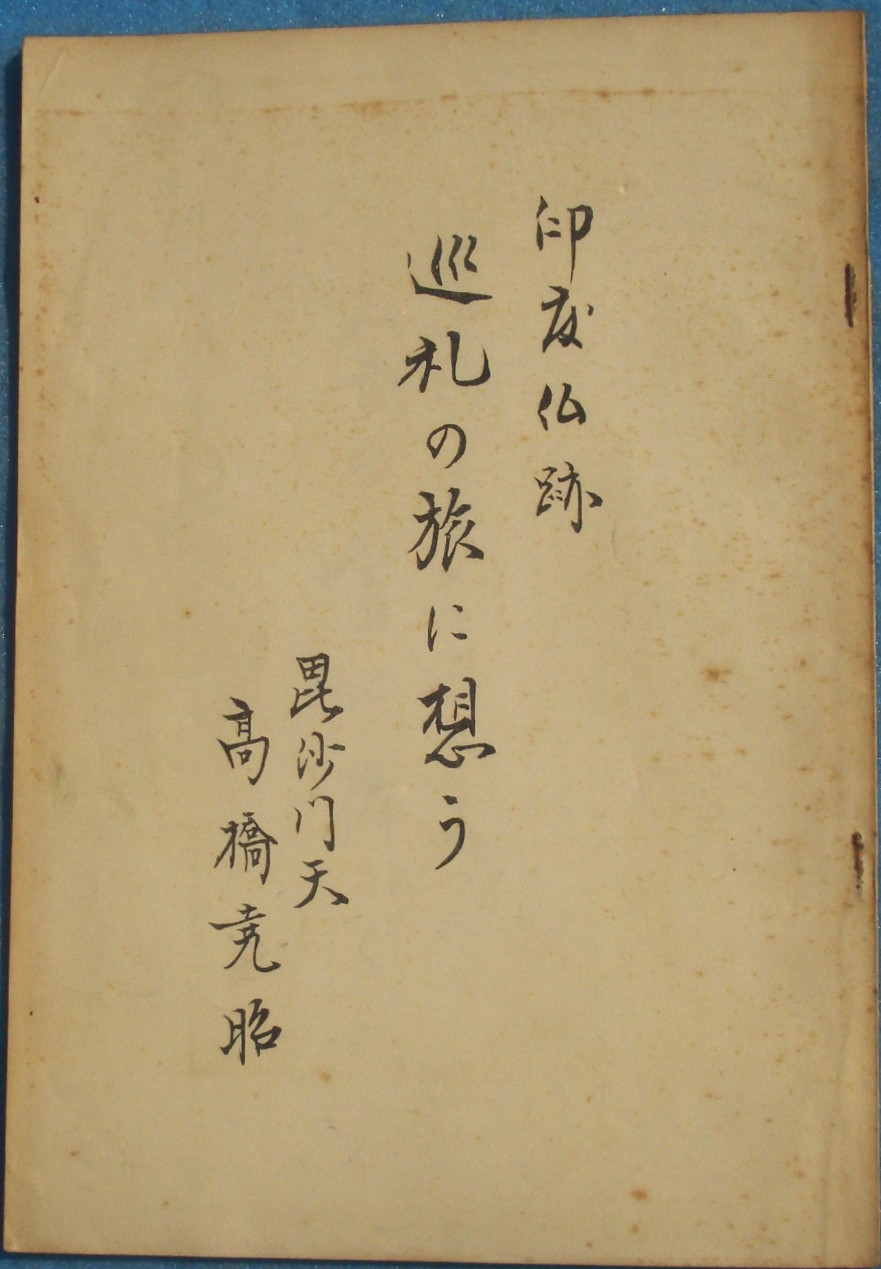 | 印度仏跡 巡礼の旅に想う 毘沙門天・高橋堯昭 (静岡県富士市) | B5判、56ページ、表紙汚、背・小口ヤケ | 毘沙門天・高橋堯昭 | 昭和期 | \700 | |