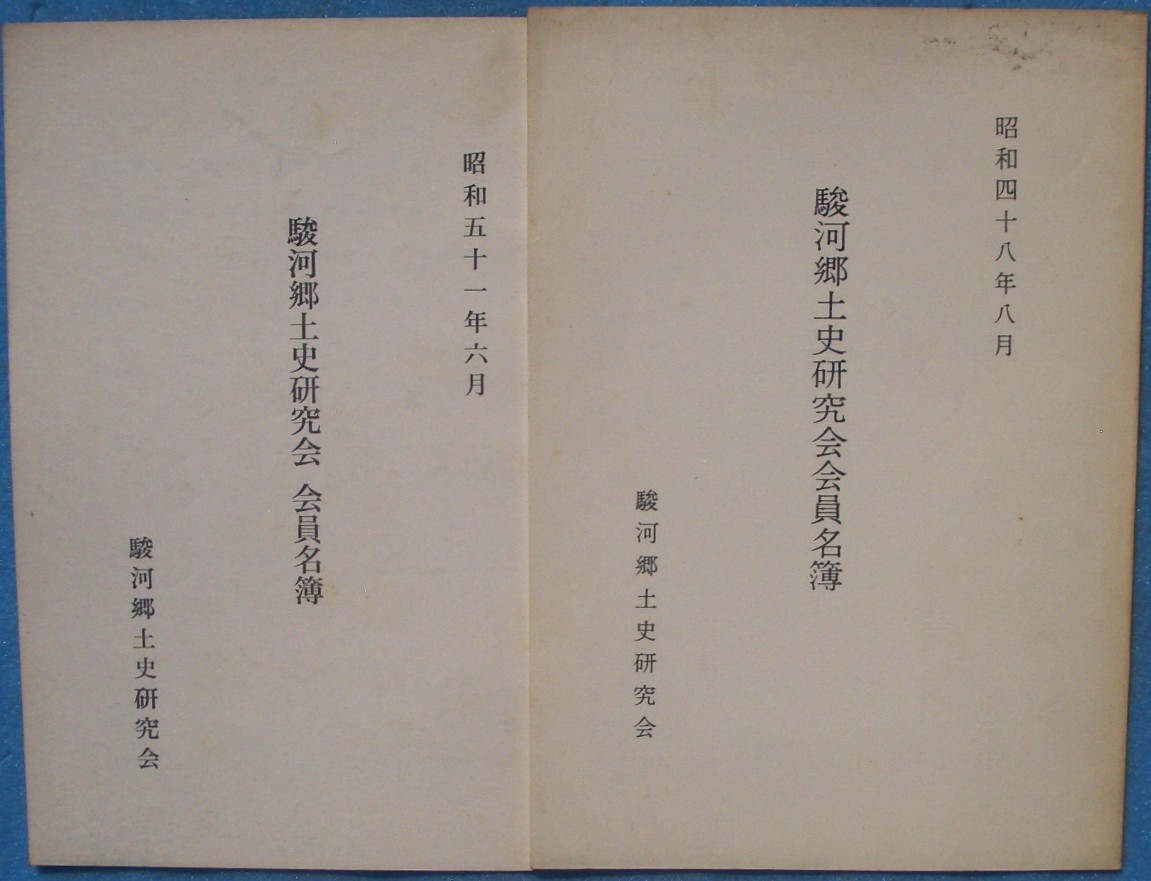 | 駿河 第50号 | B5、須津山入会地ほか | 梅原・草間・井口・渡辺・高瀬・渡辺・高井編 | 駿河郷土史研究会 | 平成8 | \2,000 |