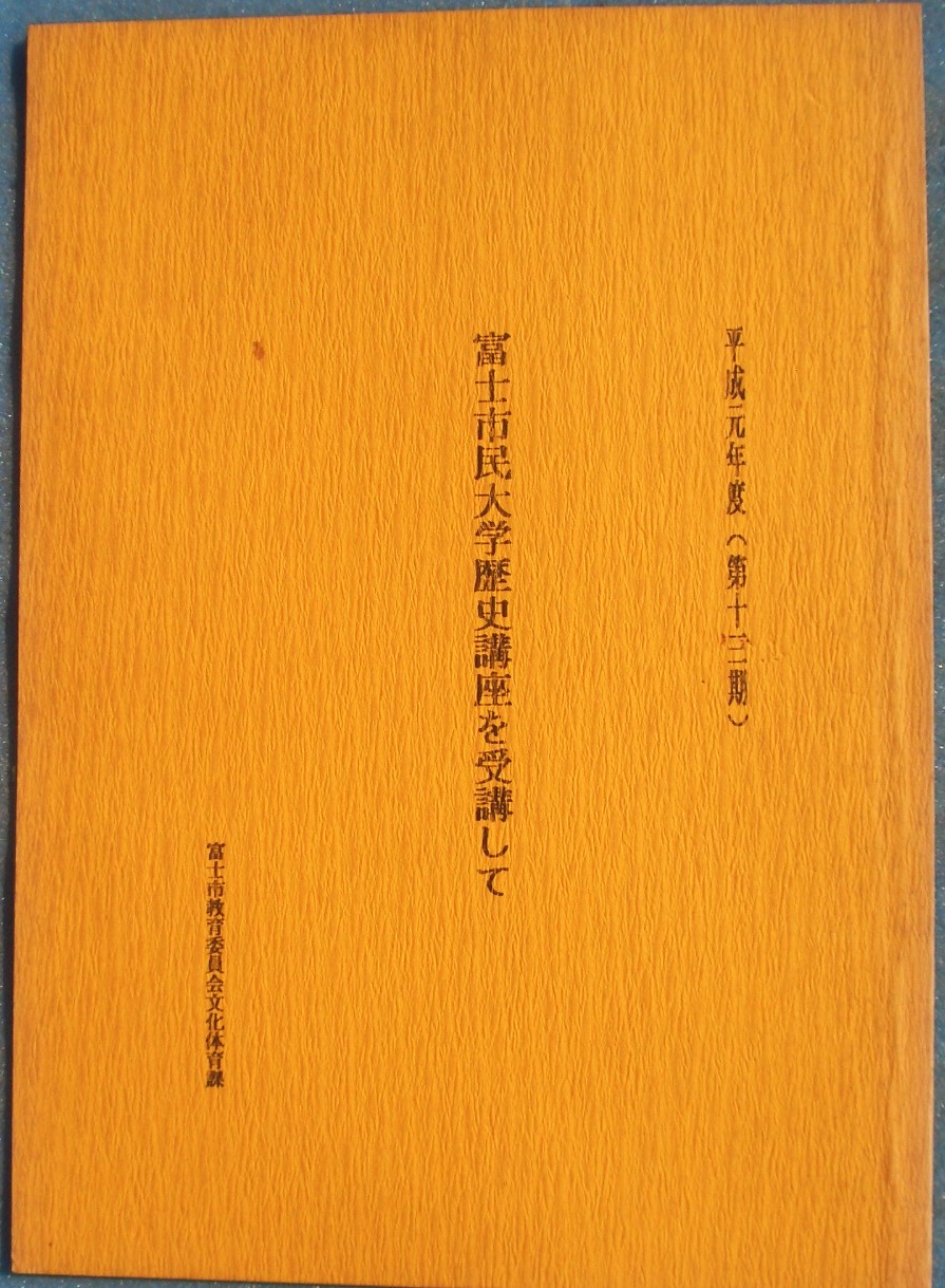 | 富士市 原始・古代の旅 市民のための考古学教室 (静岡県) 富士市教育委員会 | B5判、27ページ、表紙端ヤケ、小口少ヤケ・汚 | 富士市教育委員会 | 昭和60年 | \600 | |