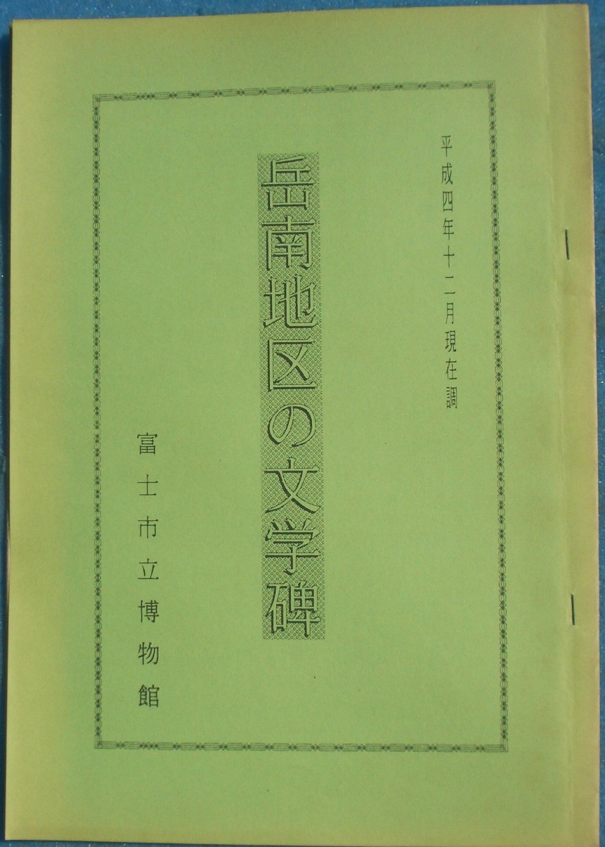 | 富士宮の文学探歩 (静岡県) 富士宮市立図書館叢書1 | A5判、35ページ | 富士宮市立中央図書館 | 平成元年 | \500 | |