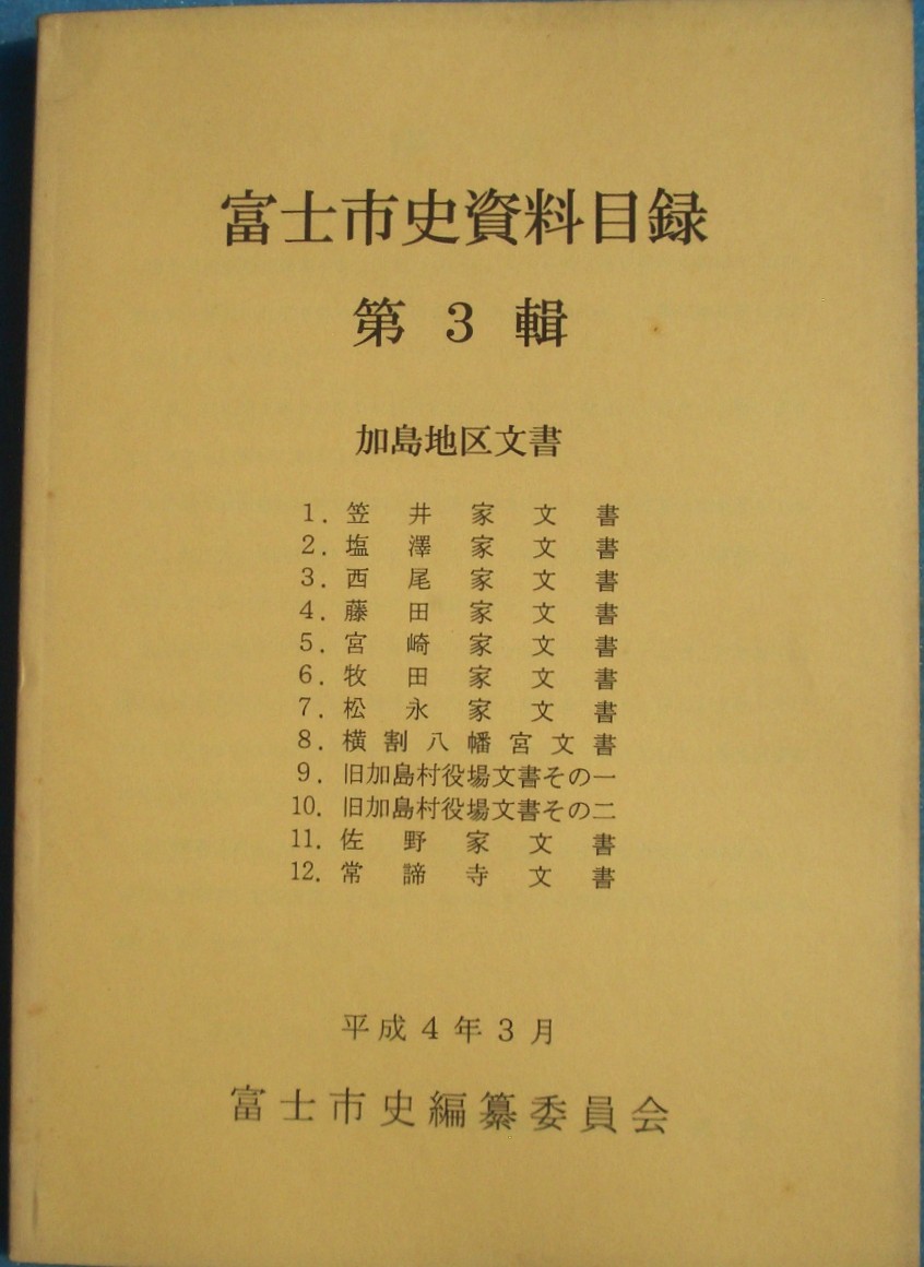 | 旧中里村大坪関家文書目録 | B5 | 駿河郷土史研究会編 | 富士市立博物館 | 平成3 | \2,500 |