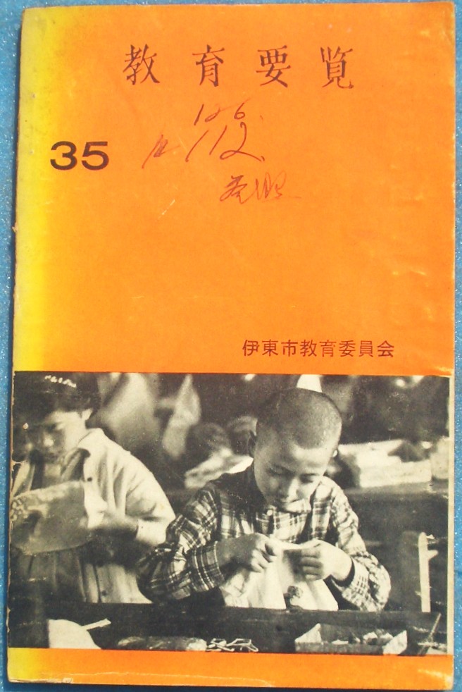 | 教育要覧 昭和35年度 (静岡県)伊東市教育委員会 | 新書判、137ページ、背痛、端ヤケ、表紙少書、小口ヤケ大 | 静岡県・伊東市教育委員会事務局 | 昭和35年 | \700 | |