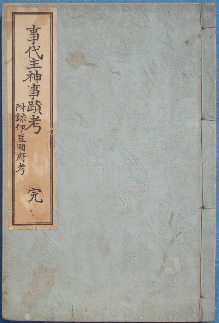 | 事代主神事蹟考 一名伊豆三島神社祭神考 付録伊豆国府考 萩原正夫著 誠之堂 | 和装、半紙本、題箋・表紙少汚 | 萩原正夫 | 誠之堂書店 | 明治45年 | \5,000 |