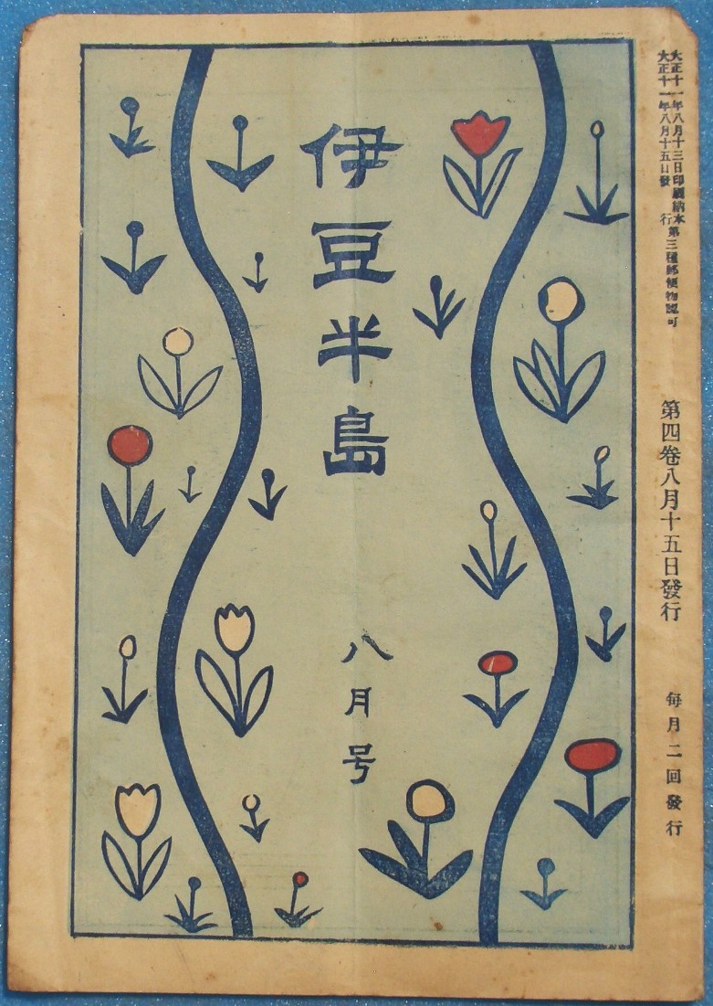 | 伊豆半島 4巻8月15日号 大正11年 伊豆半島社 | A5判、35ページ、端痛、ヤケ汚、折、痛本 | 伊豆半島社 | 大正11年 | \600 | |