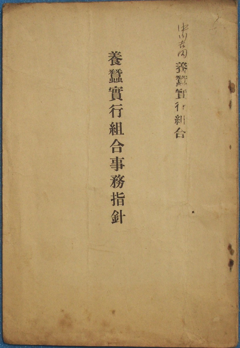 | 養蚕実行組合事務指針 静岡県賀茂郡養蚕業組合 | A5判、42ページ、1頁少破、表紙表紙端痛・ヤケ汚、表紙少書 | 静岡県賀茂郡養蚕業組合 | 昭和12年 | \800 | |