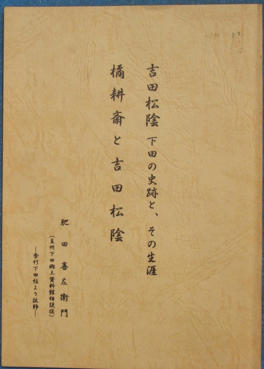 | 橘耕斎と吉田松陰 肥田喜左衛門著 吉田松陰 下田の史跡とその生涯 季刊下田帖より抜粋 | A5判、24ページ | 豆州下田郷土資料館 | \400 | ||