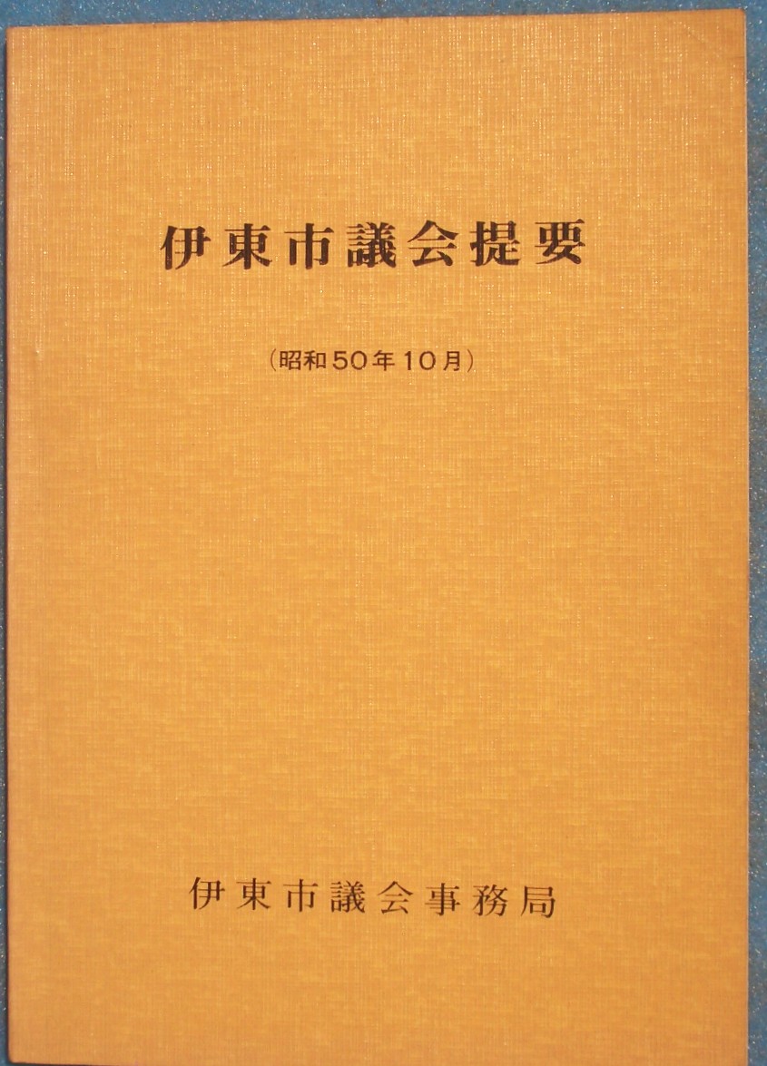 | 伊東市議会提要 昭和50年10月 (静岡県) 伊東市議会事務局 | A5判、119ページ、小口ヤケ | 伊東市議会事務局 | 昭和50年 | \800 | |