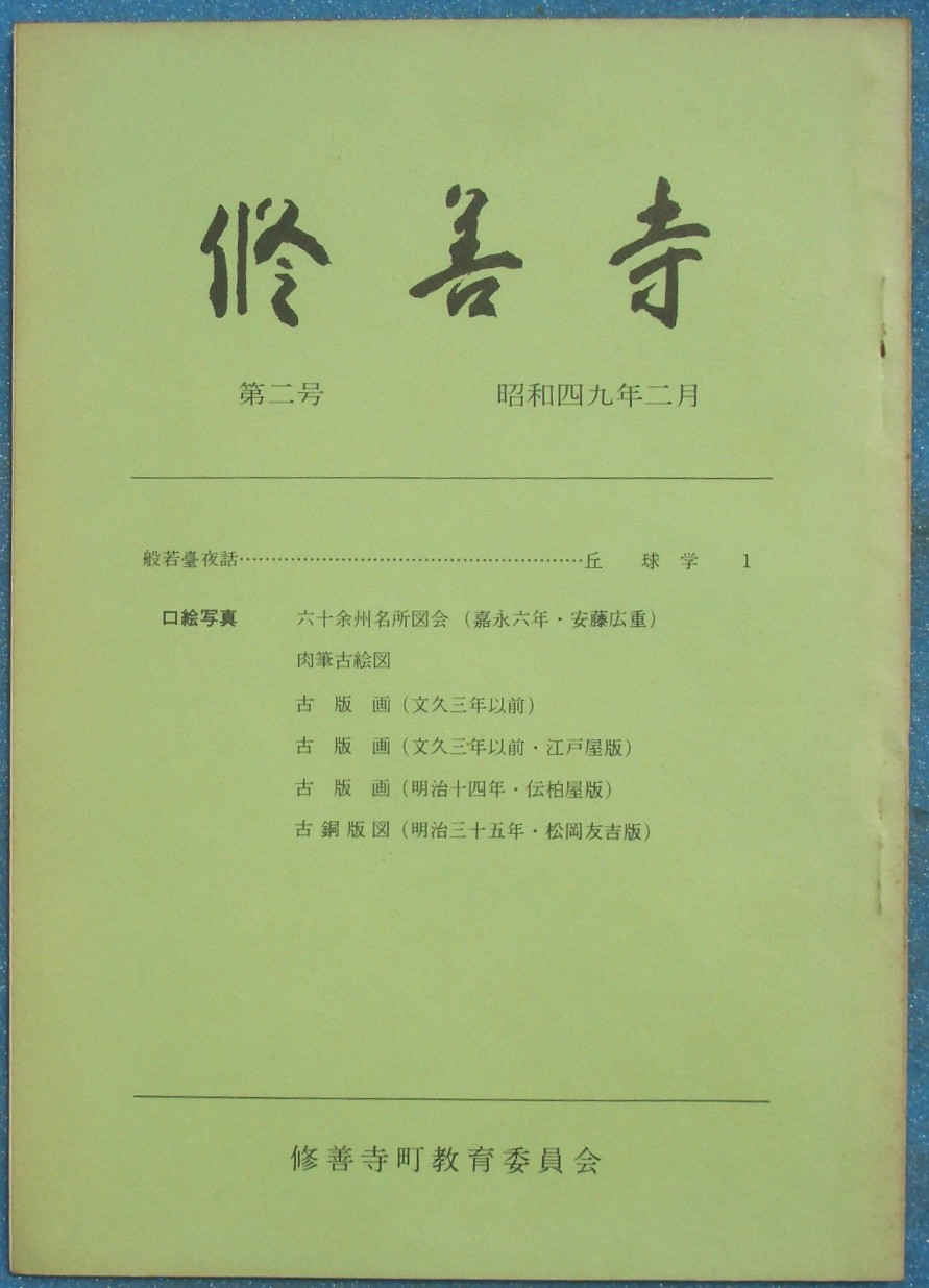 | 修善寺 2号 昭和49年2月 般若臺夜話 復刊 | A5判、52ページ、昭和9年の復刻 | 静岡県田方郡・修善寺町教育委員会 | 昭和49 | \600 | |
