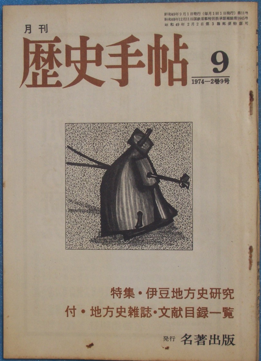 | 歴史手帖 2巻9号(1974年9月号) 特集・伊豆地方史研究 | A5判、63ページ、背・小口ヤケ | 名著出版 | 昭和49年 | \500 | |