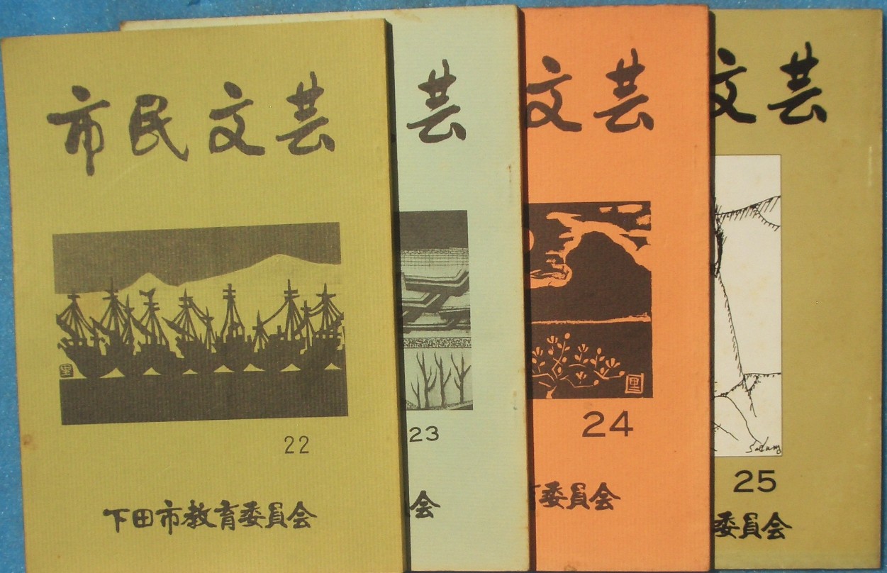 | 市民文芸 22〜25号(昭和57〜60年) 四冊 (静岡県)下田市教育委員会 | A5判、小口少ヤケ | 静岡県・下田市教育委員会 | 昭和57年〜60年 | \2,000 | |