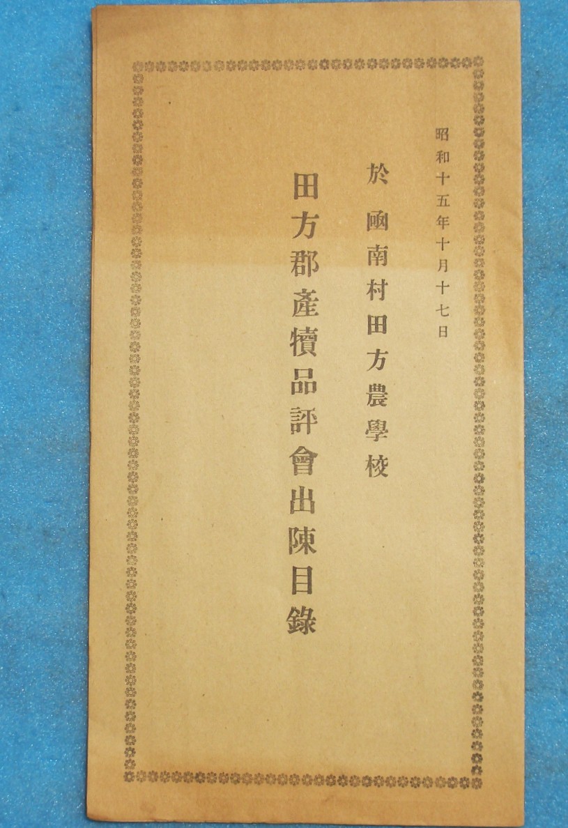 | 田方郡産犢品評会出陳目録 昭和15年10月17日 於函南村田方農学校 (子牛) | 一枚・26×54センチ・両面印刷、ヤケ汚 | 昭和15年 | \1,000 | ||