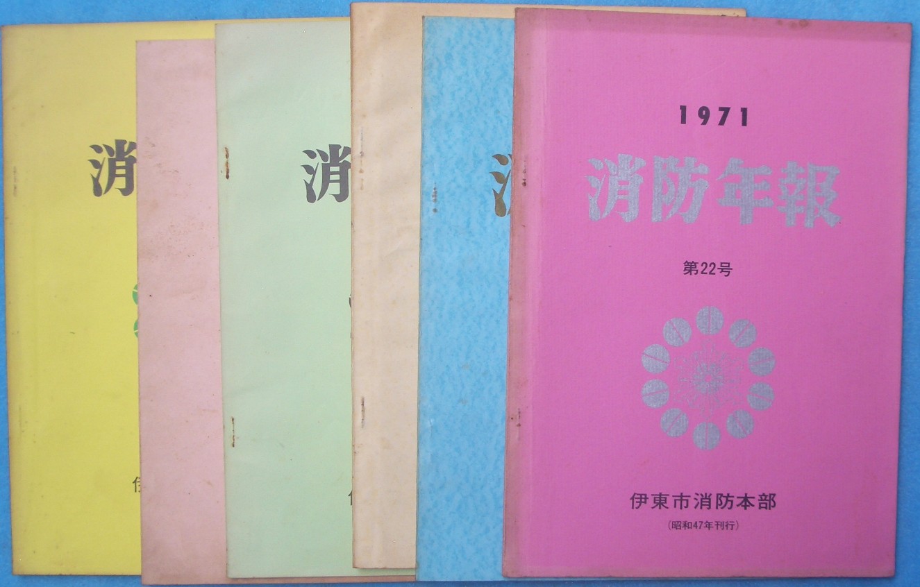 | 消防年報 22〜24、1980年、30周年 六冊 静岡県伊東市消防本部 (1971年〜1980年の内) | B5判、各冊薄冊、ヤケ、汚 | 伊東市消防本部 | 昭和47年〜56年 | \3,000 | |