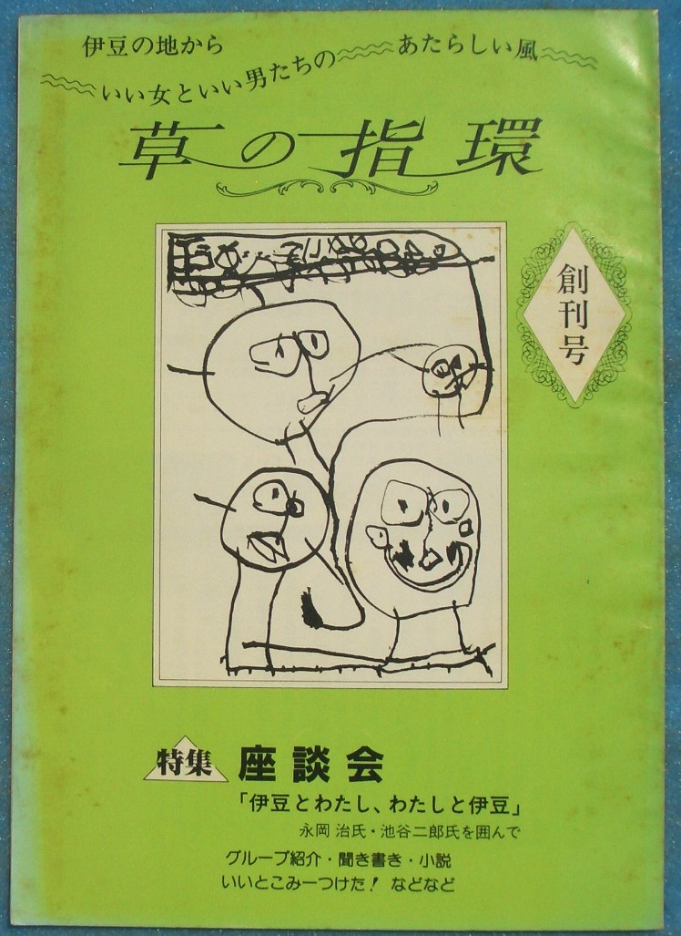 | 草の指輪 創刊号 1988年1月 伊豆地方ミニコミ誌 | B5判、26ページ、表紙端ヤケ汚 | 特集・座談会 「伊豆とわたし、わたしと伊豆」 永岡治氏・池谷二郎氏を囲んで | 草の指輪編集部 | 昭和63年 | \700 |