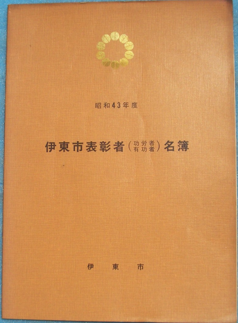 | 伊東市表彰者(功労者・有功者)名簿 昭和43年度 (静岡県) 伊東市発行 | B5判、11ページ、表紙少シワ | 静岡県伊東市発行 | 昭和43年度 | \600 | |