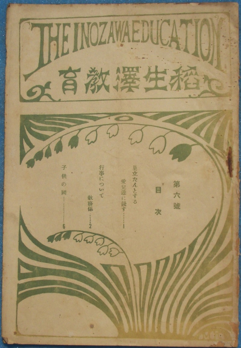 稲生澤教育 6号(昭和4年4月) 伊豆国稲生澤村・稲生澤小学校 (現・静岡県下田市) | A5判、26ページ、端痛、ヤケ汚、釘錆 | 稲生澤小学校 | 昭和4年 | \1,000 | |