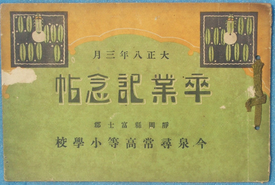 卒業記念帖 大正8年3月 静岡県富士郡・今泉尋常高等小学校 | A5判横本、薄冊、紐綴、表紙少傷・ヤケ、 | 静岡県富士郡・今泉尋常高等小学校 | 大正8年 | \2,500 | |