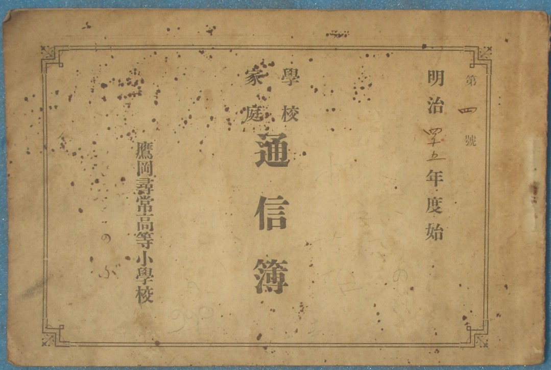 学校家庭・通信簿 明治45年始 鷹岡尋常高等小学校(静岡県富士市) | A5判、薄冊、ヤケ・痛・汚、記名、明治45年・大正2年の2年分の通信簿 | 鷹岡尋常高等小学校 | 明治45・大正2年 | \2,000 | |