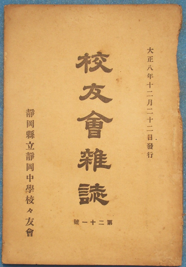 校友会雑誌 21号 (大正8年12月22日) 静岡県立静岡中学校々友会 鼠害 | A5判、100ページ、ヤケ、背鼠害 | 静岡県立静岡中学校々友会 | 大正8年 | 売切 | |