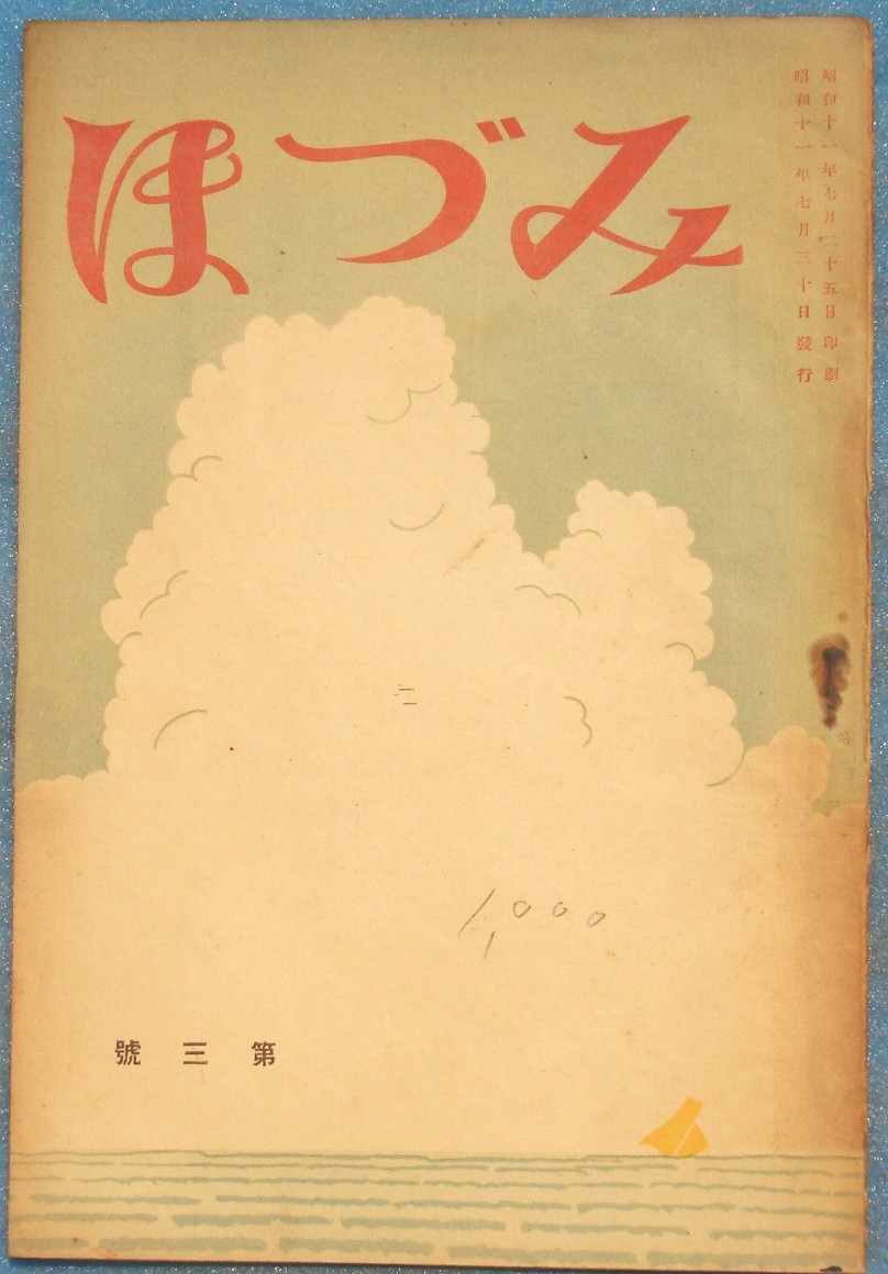 みづほ 3号 (昭和11年7月) 静岡県富士郡伝法尋常高等小学校綴方研究部編 | A5判、29ページ、ヤケ、角折少シミ | 静岡県富士郡伝法尋常高等小学校児童文庫 | 昭和11年 | \1,000 | |
