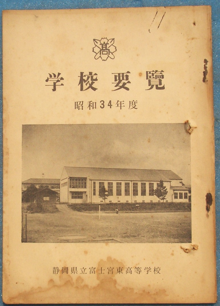 学校要覧 昭和34年度 静岡県立富士宮東高等学校 シミ | A5判、52ページ、綴穴、ヤケ汚、下部シミ、釘錆、小口ヤケ大 | 静岡県立富士宮東高等学校 | 昭和34年度 | \800 | |