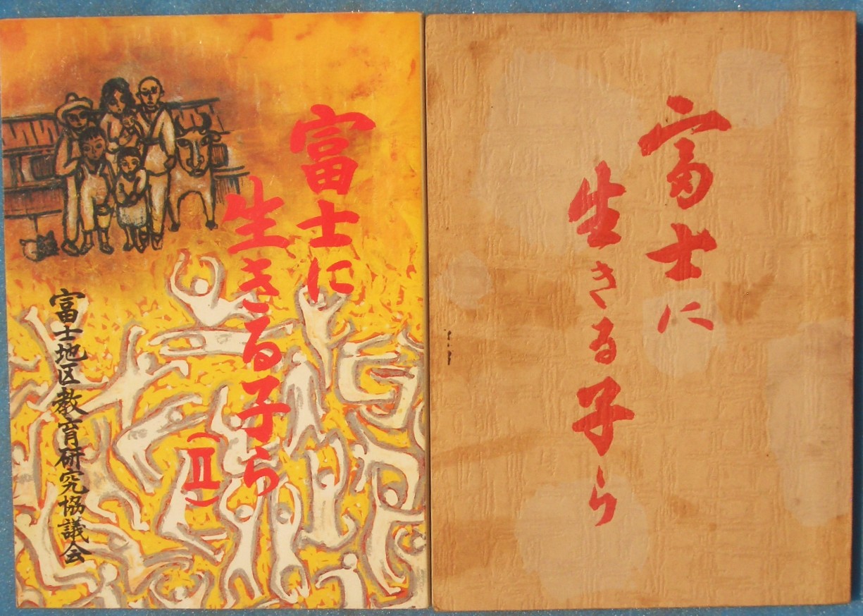 富士に生きる子ら 1・2 二冊 ふもと20周年記念誌・200号記念誌 (小中学生文集) | A5判、316・392ページ、1冊表裏表紙汚・小口ヤケ汚 | ふもと記念誌編集委員会編 | 静岡県・富士地区教育研究協議会 | 昭和45年・平成2年 | \2,000 |