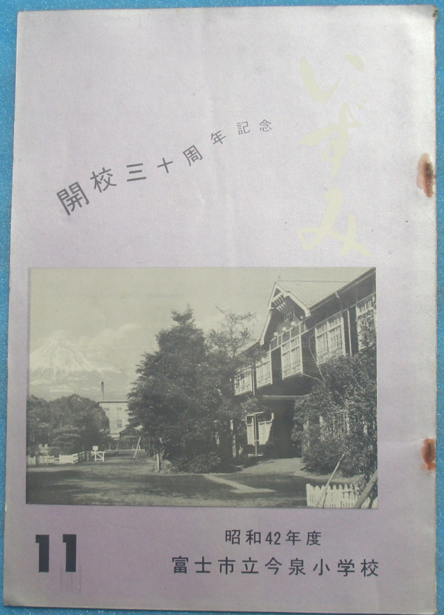 いずみ 11号 開校三十周年記念 昭和42年度 静岡県富士市立今泉小学校 | B5判、39ページ、背少痛、少釘錆 | 静岡県・富士市立今泉小学校 | 昭和43年 | \1,000 | |