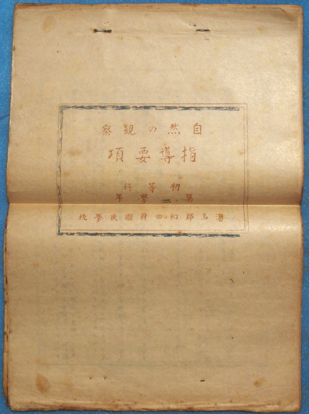 自然観察指導要項 初等科第二学年 静岡県・浜名郡和田村国民学校 | B4判、孔版、21枚、ホッチキス留、折れ、端少痛汚 | 浜名郡和田村国民学校 | \1,000 | ||