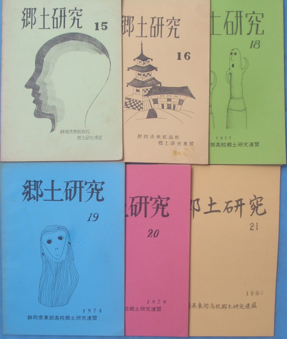 郷土研究 15・16・18〜21号 六冊 静岡県東部高校郷土研究連盟 | B5判、3冊孔版、18〜60ページ、少汚、小口ヤケ | 静岡県東部高校郷土研究連盟 | 昭和50〜56年 | \4,000 | |