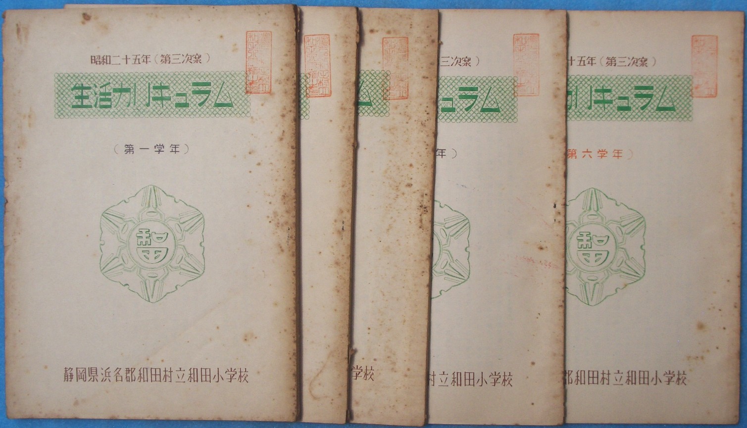 生活カリキュラム 昭和25年(第三次案) 第1・2・4〜6学年 五冊 静岡県浜名郡和田村立和田小学校 孔版 | B5判、孔版、背痛、表紙汚、小口ヤケ、蔵印 | 静岡県浜名郡和田村立和田小学校 | \3,500 | ||