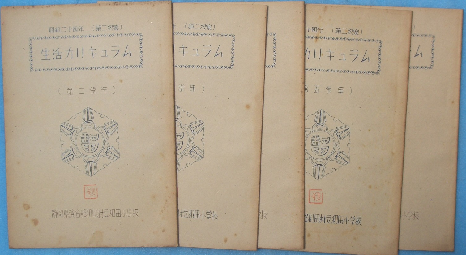 生活カリキュラム 昭和24年(第二次案) 第2〜6学年 五冊 静岡県浜名郡和田村立和田小学校 孔版 | B5判、孔版、24〜44ページ、表裏表紙汚、小口ヤケ | 静岡県浜名郡和田村立和田小学校 | \3,500 | ||